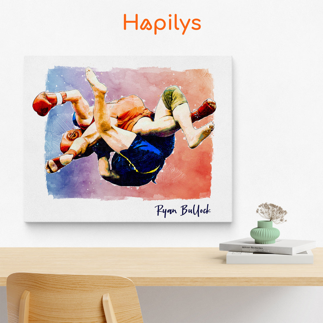 Custom Wrestling Player Gift, Custom Matte Canvas Sketch Painting From Photo