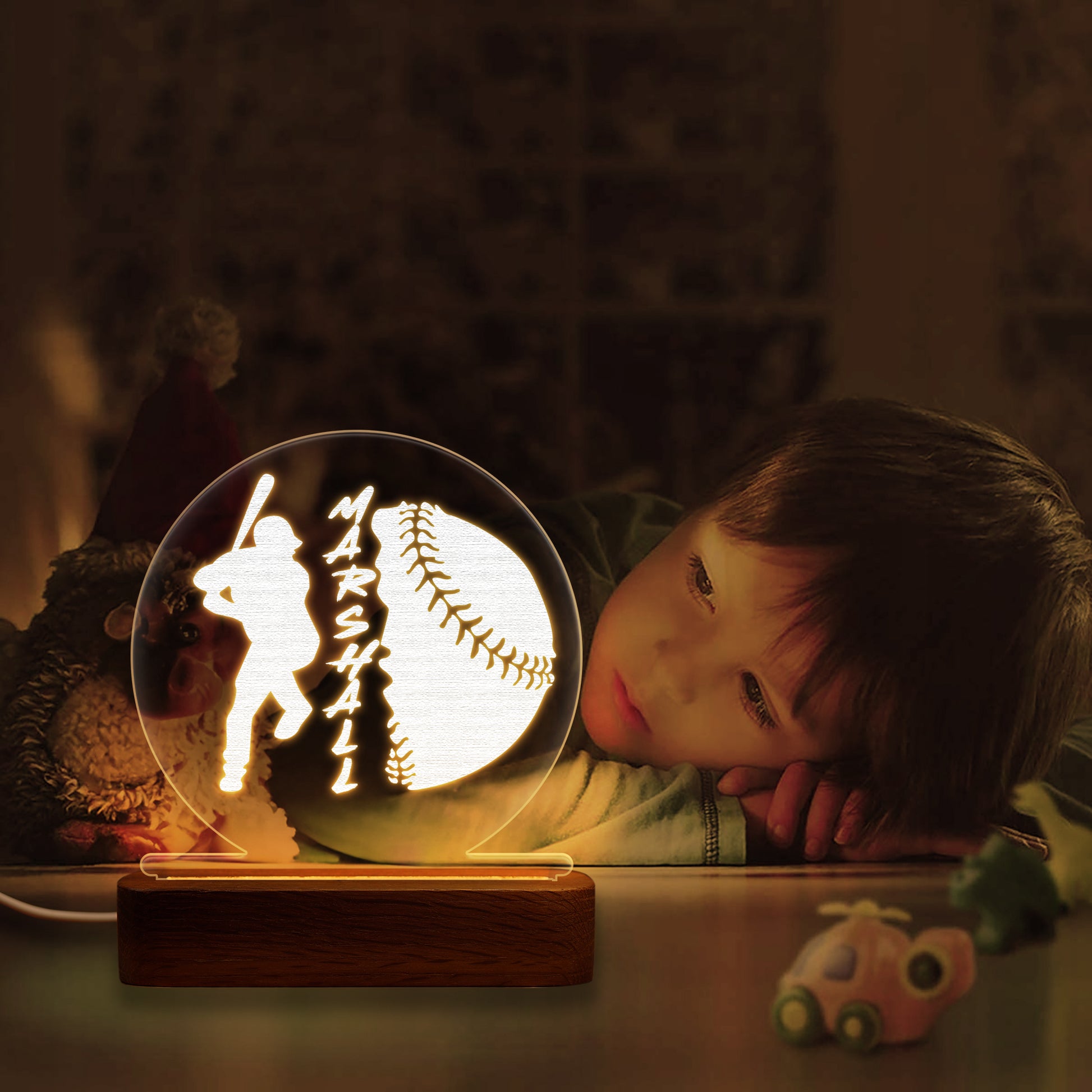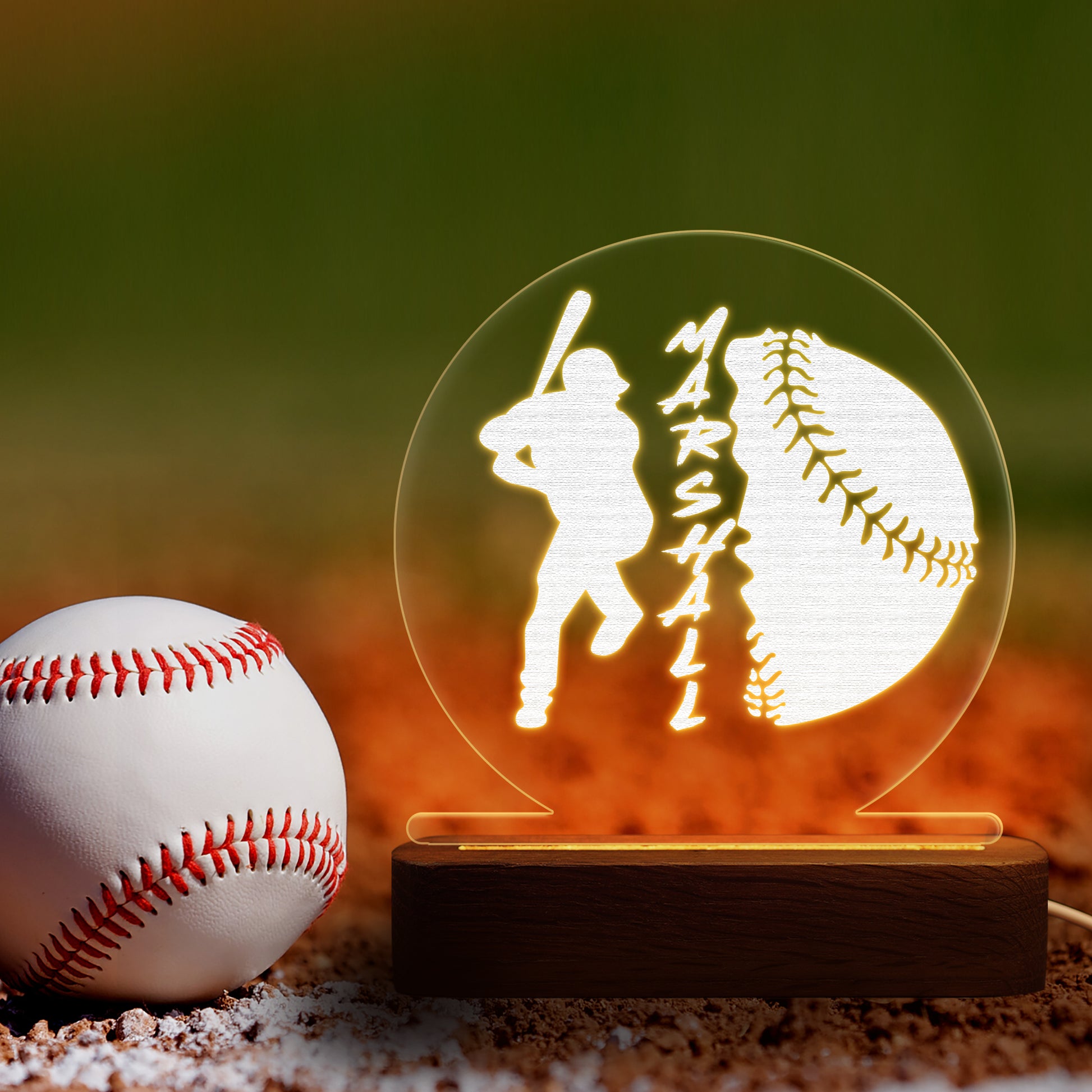 Customized Baseball Player Wooden LED Night Light - Hapilys - Stunning Custom Art