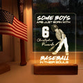Illuminate your space with a personal touch using our Customized Acrylic LED Baseball Player Night Light. Perfect for baseball enthusiasts of all ages, this night light features a beautifully etched acrylic plate displaying a dynamic baseball player design, complete with a customizable name and number. The warm LED glow provides a soft, ambient light that is ideal for bedrooms, game rooms, or as a gift for sports fans.