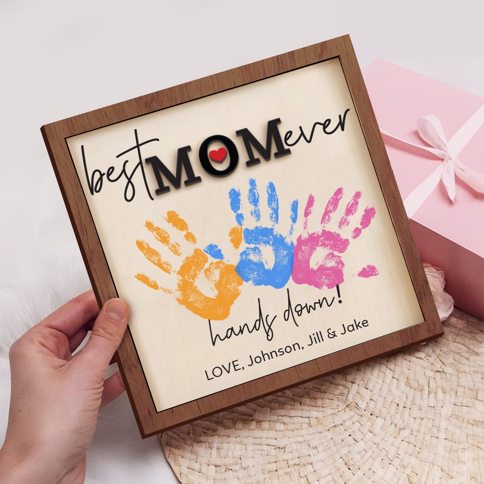 DIY "Best Mom Ever" Handprint Sign, Custom Mothers Day Wooden Sign, Handprint Crafts From Kids, Mothers Day Keepsake, Mom Handprint