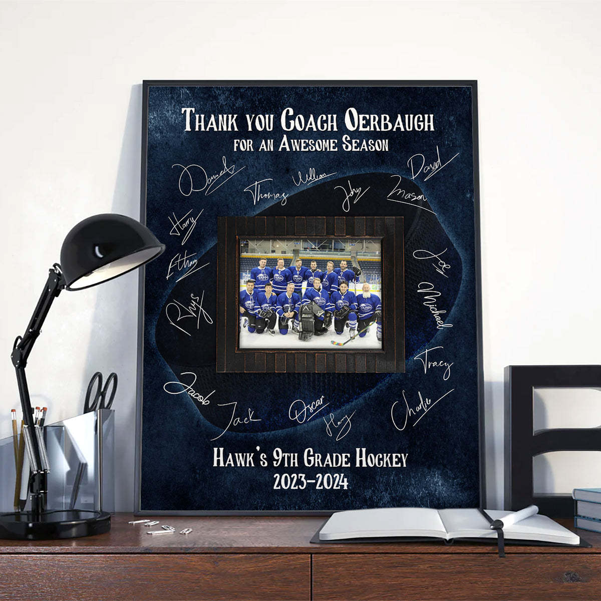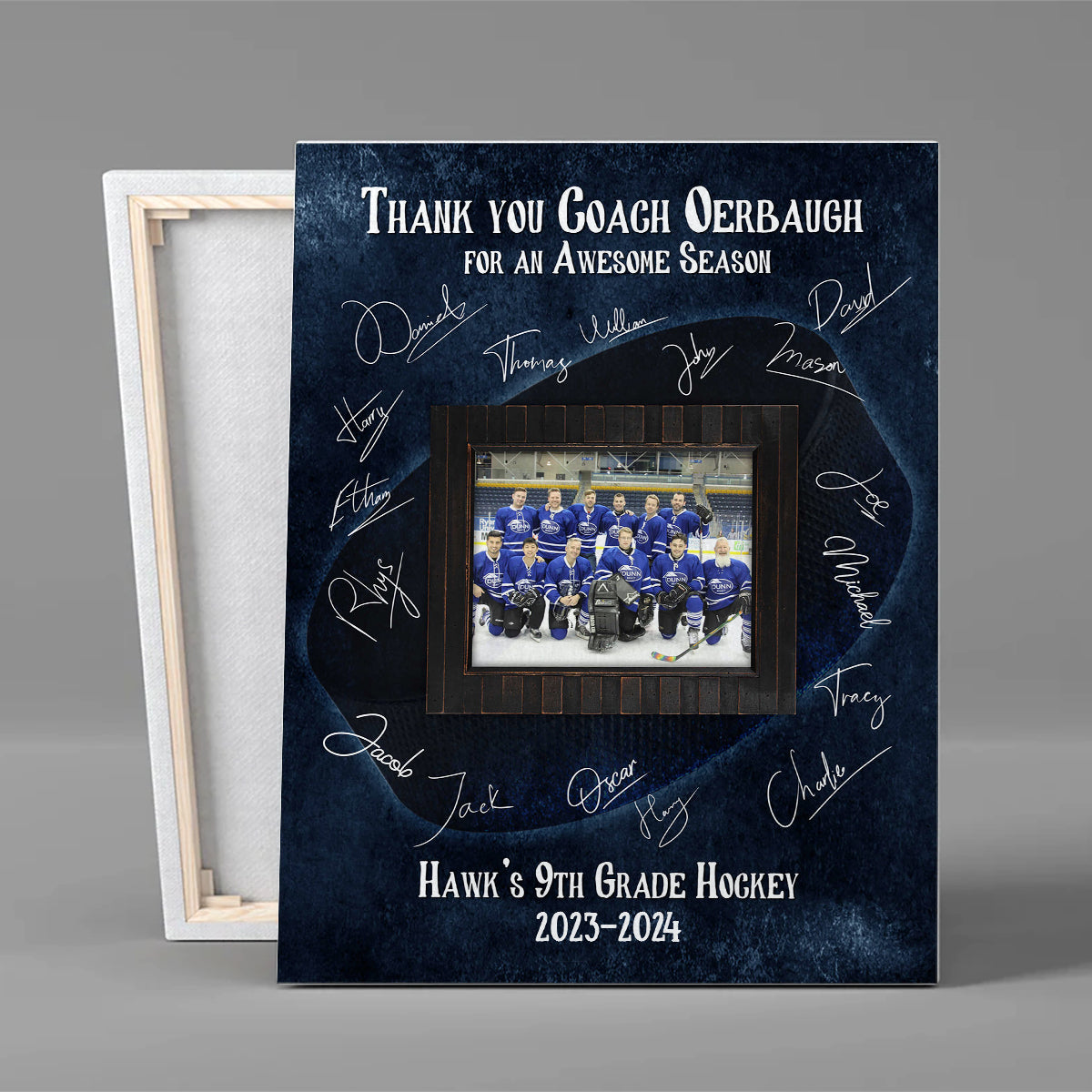 Hockey Coach Thank You Gift, Custom End of the Season Picture Canvas Print