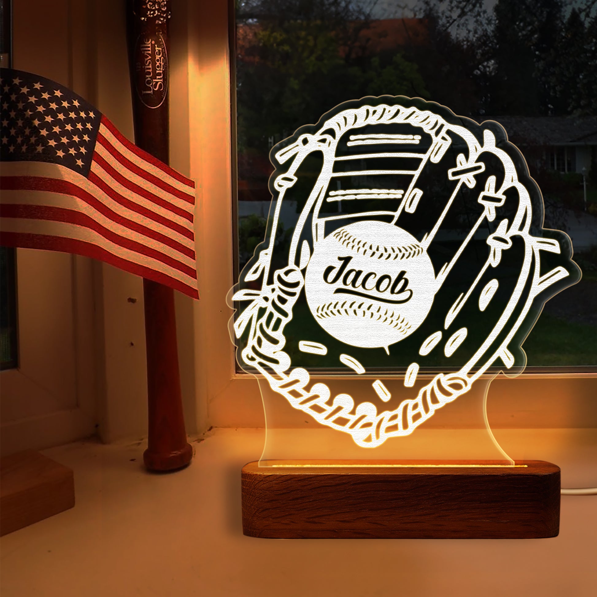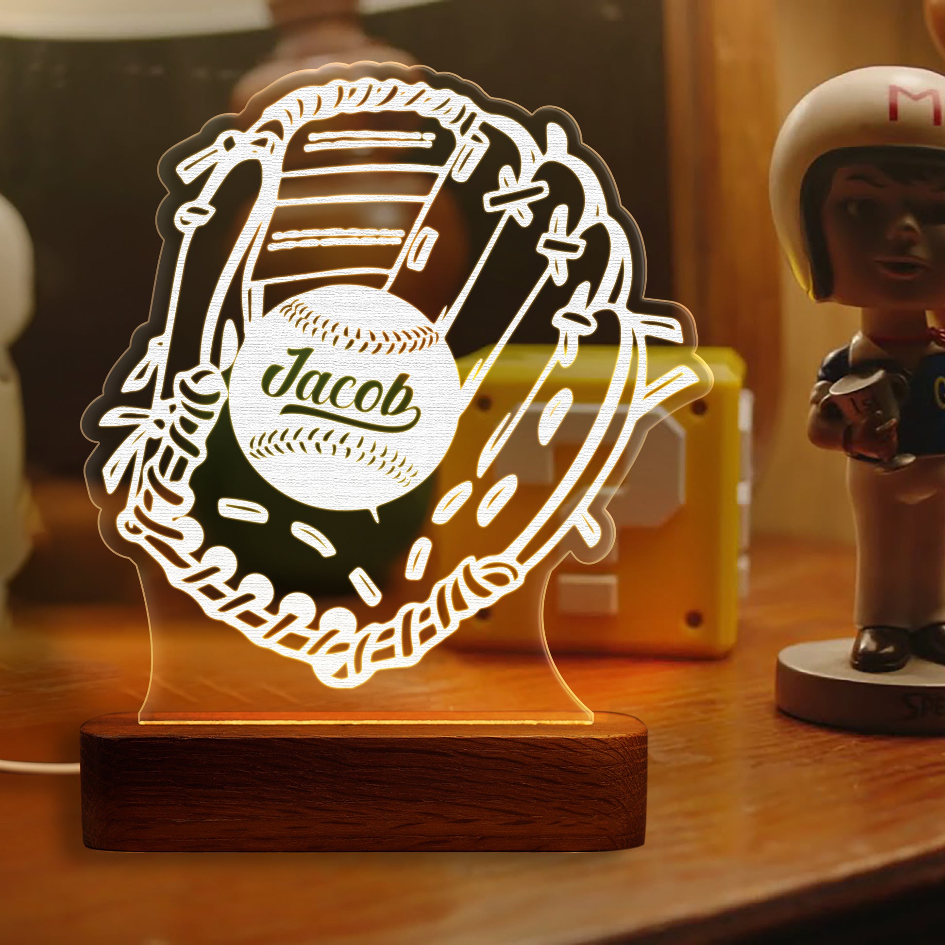 Custom Baseball Athlete Wooden LED Bedside Light