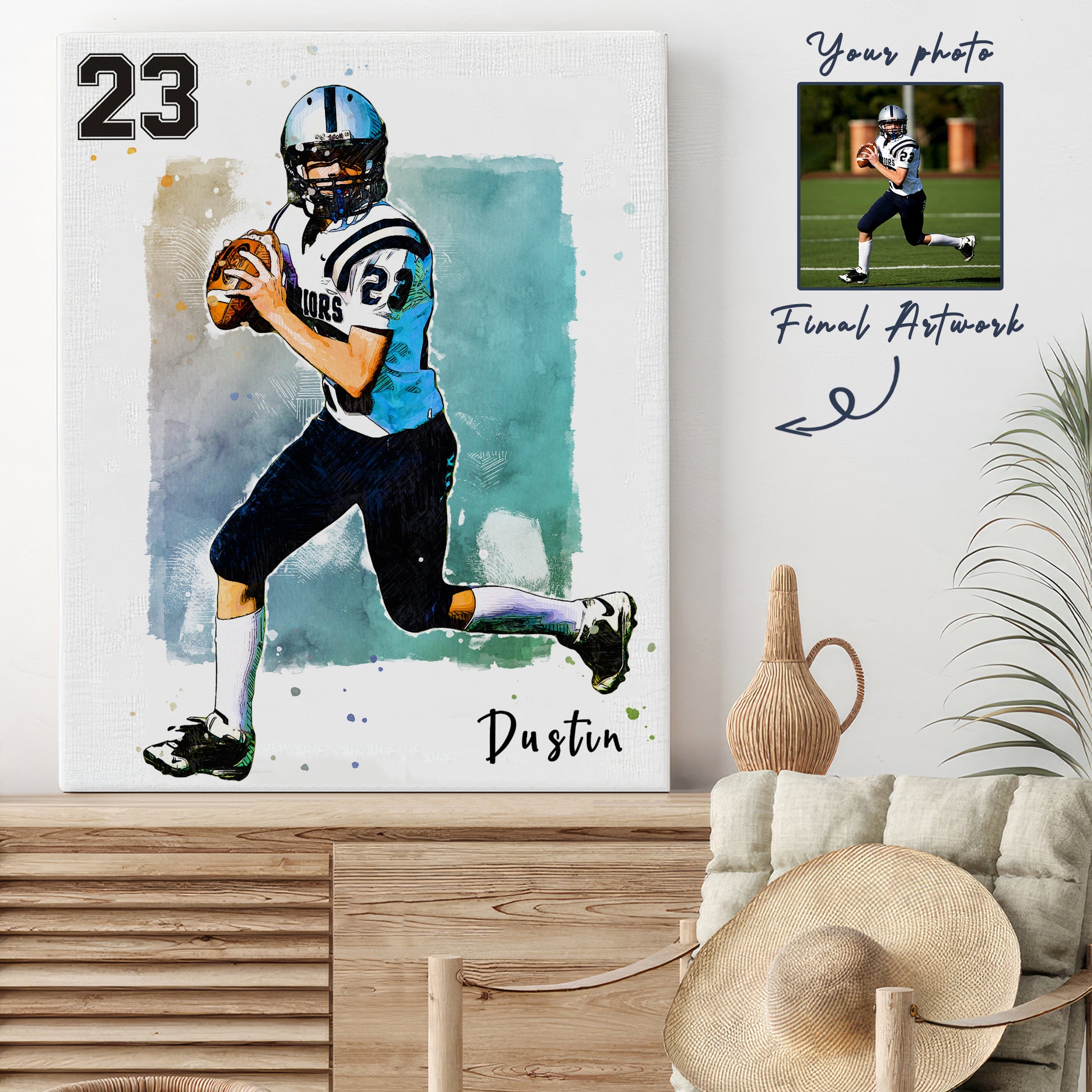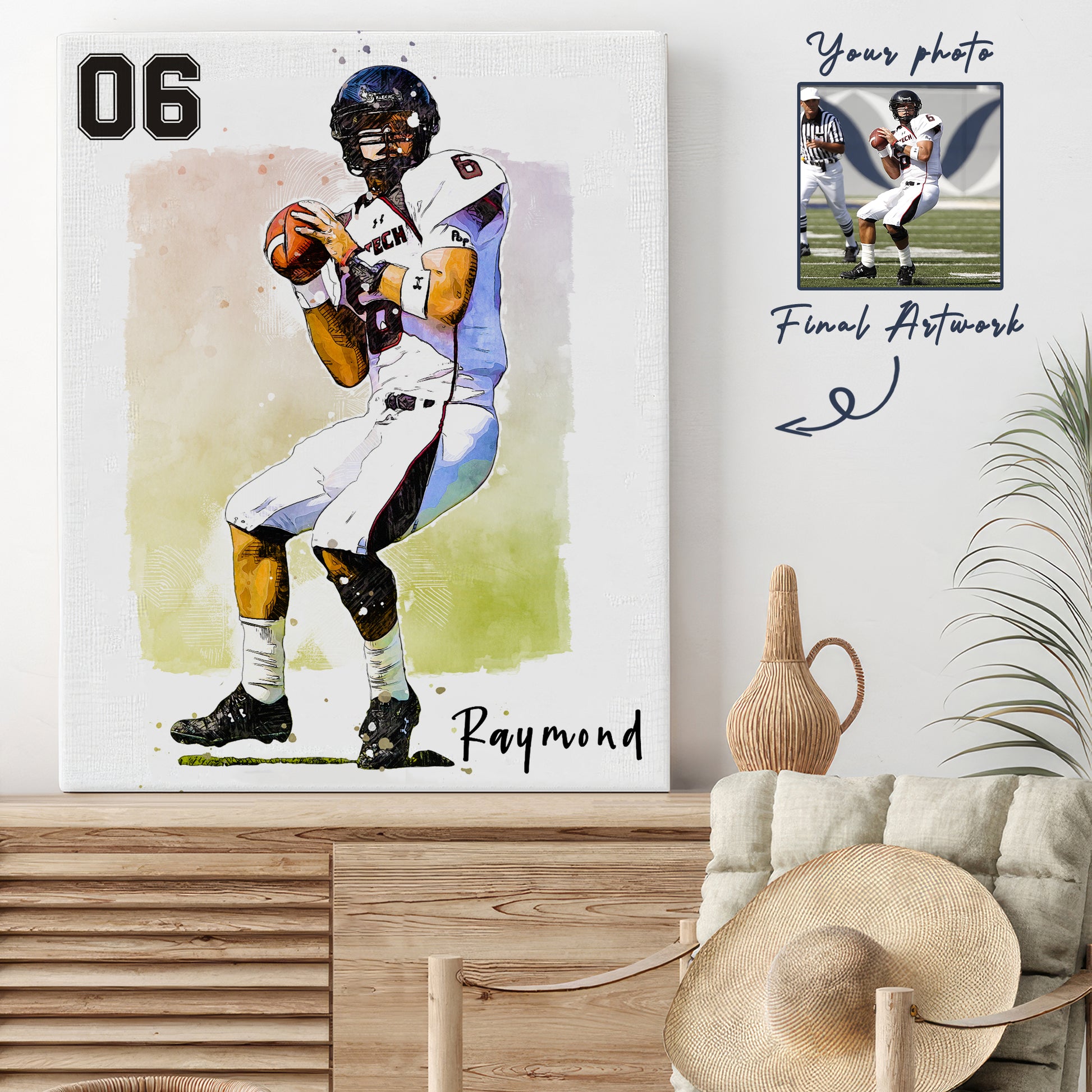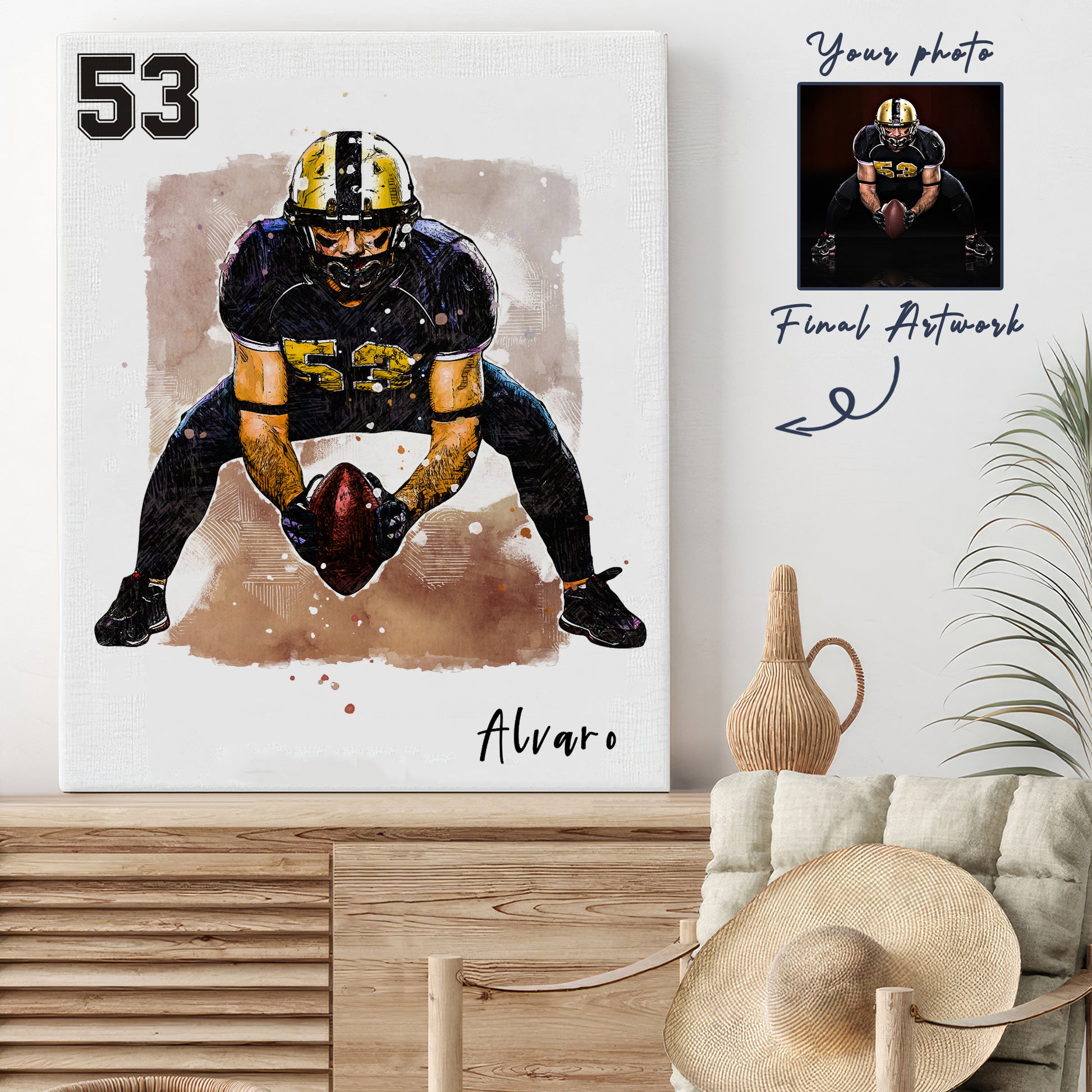 Custom American Football Player Gift, Custom Illustration Sketch Painting Matte Canvas