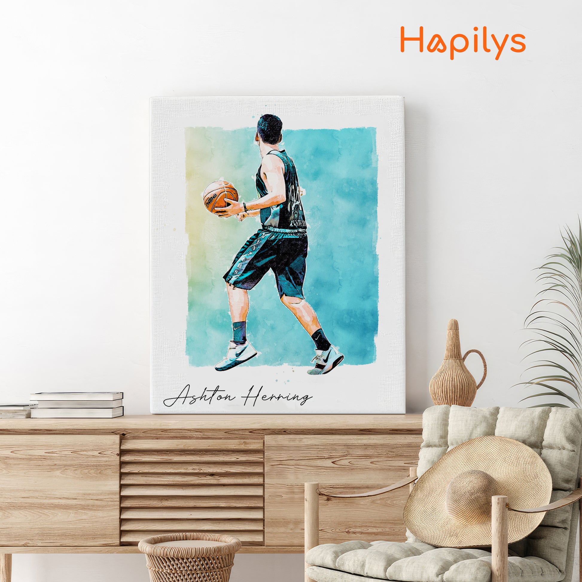 Hapilys Custom BasketBall Player Gift, Custom Sketch Painting From Photo, Custom Illustration Sketch Matte Canvas