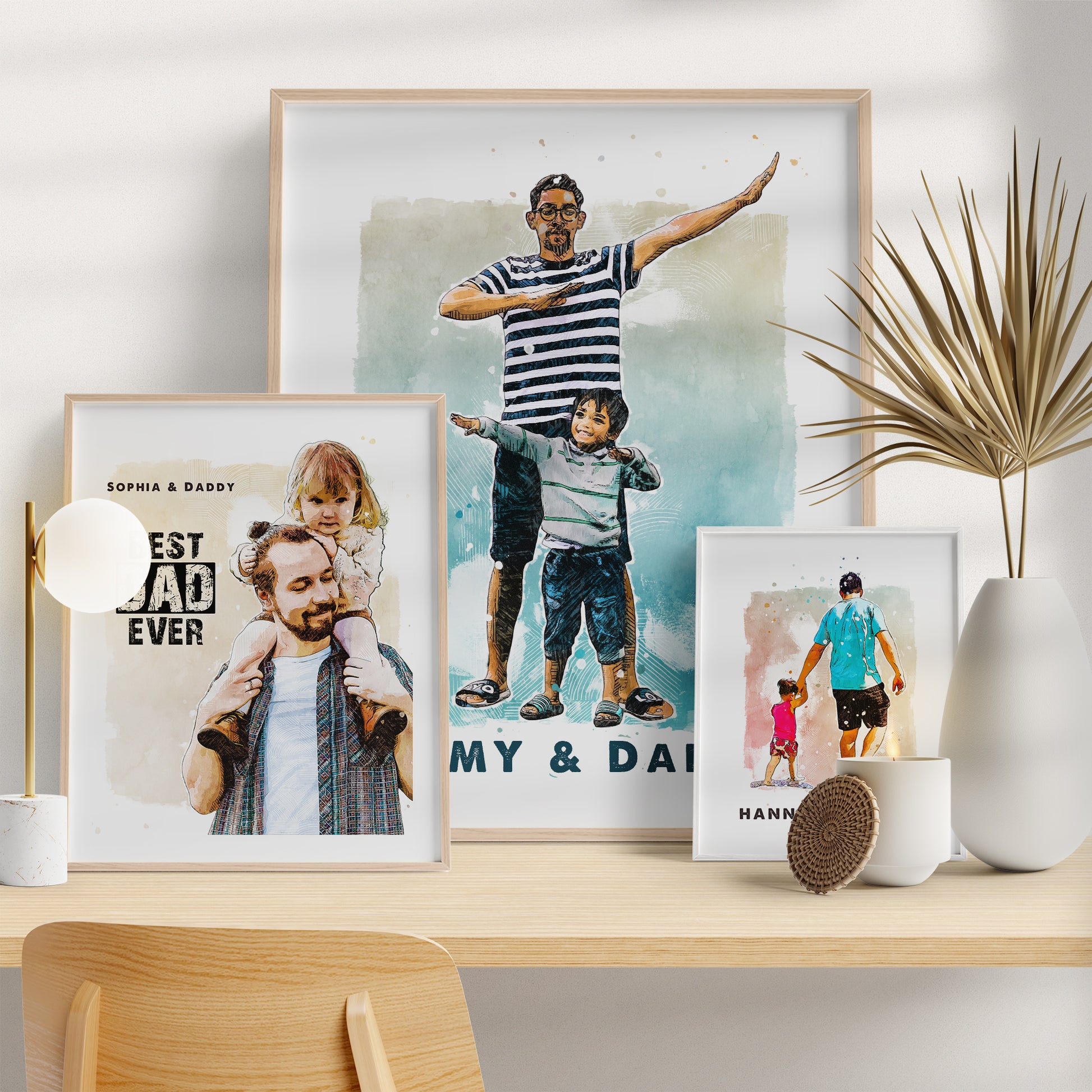 Custom Portrait Father's Day Gift, Sketch Painting from photo, Personalized Sketch Framed Canvas