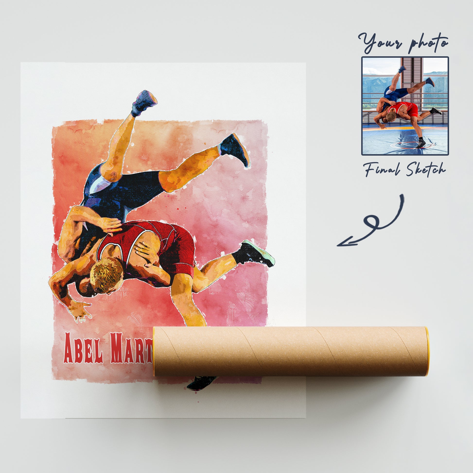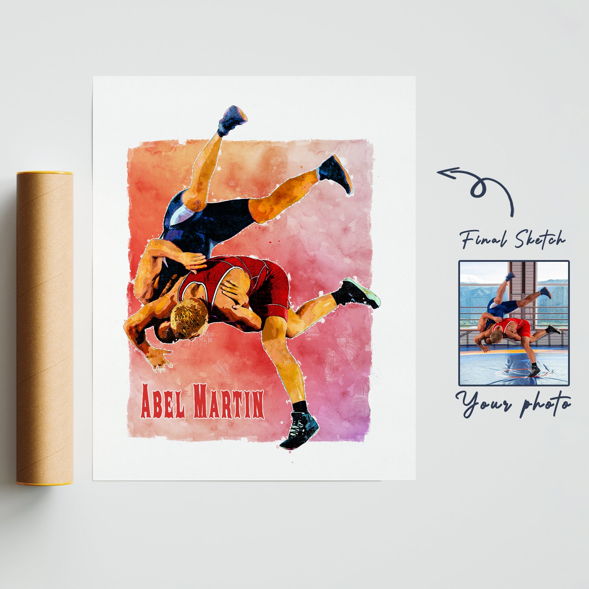 Custom Wrestling Player Gift, Custom Matte Canvas Sketch Painting From Photo