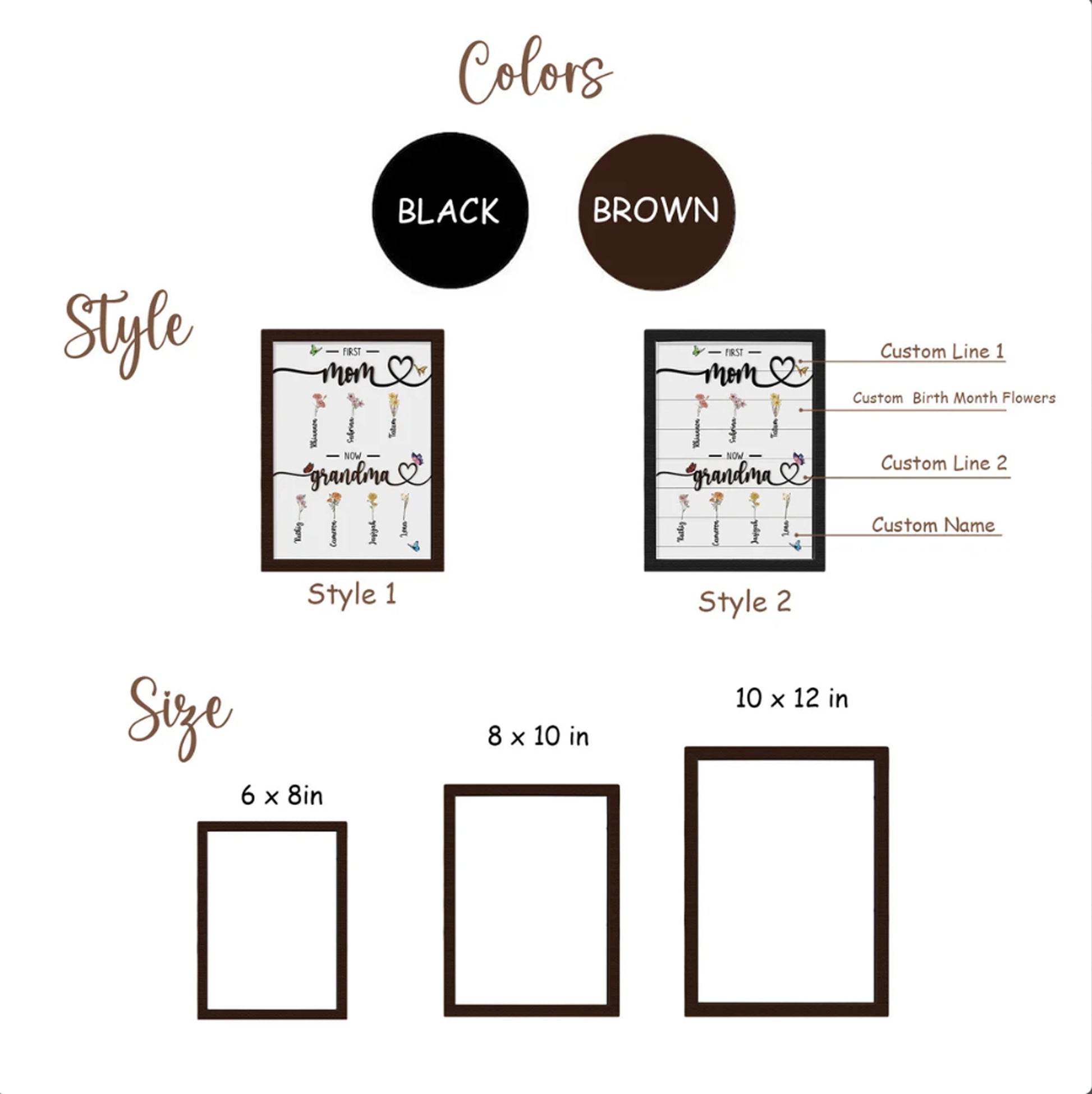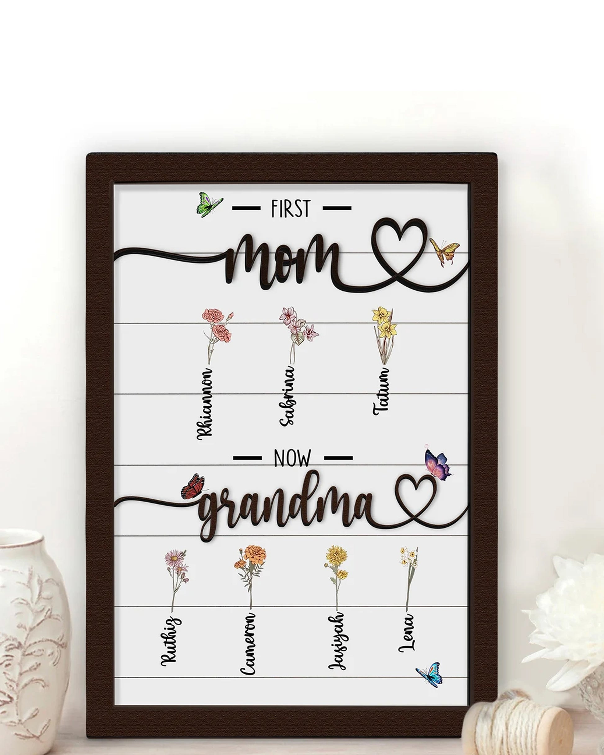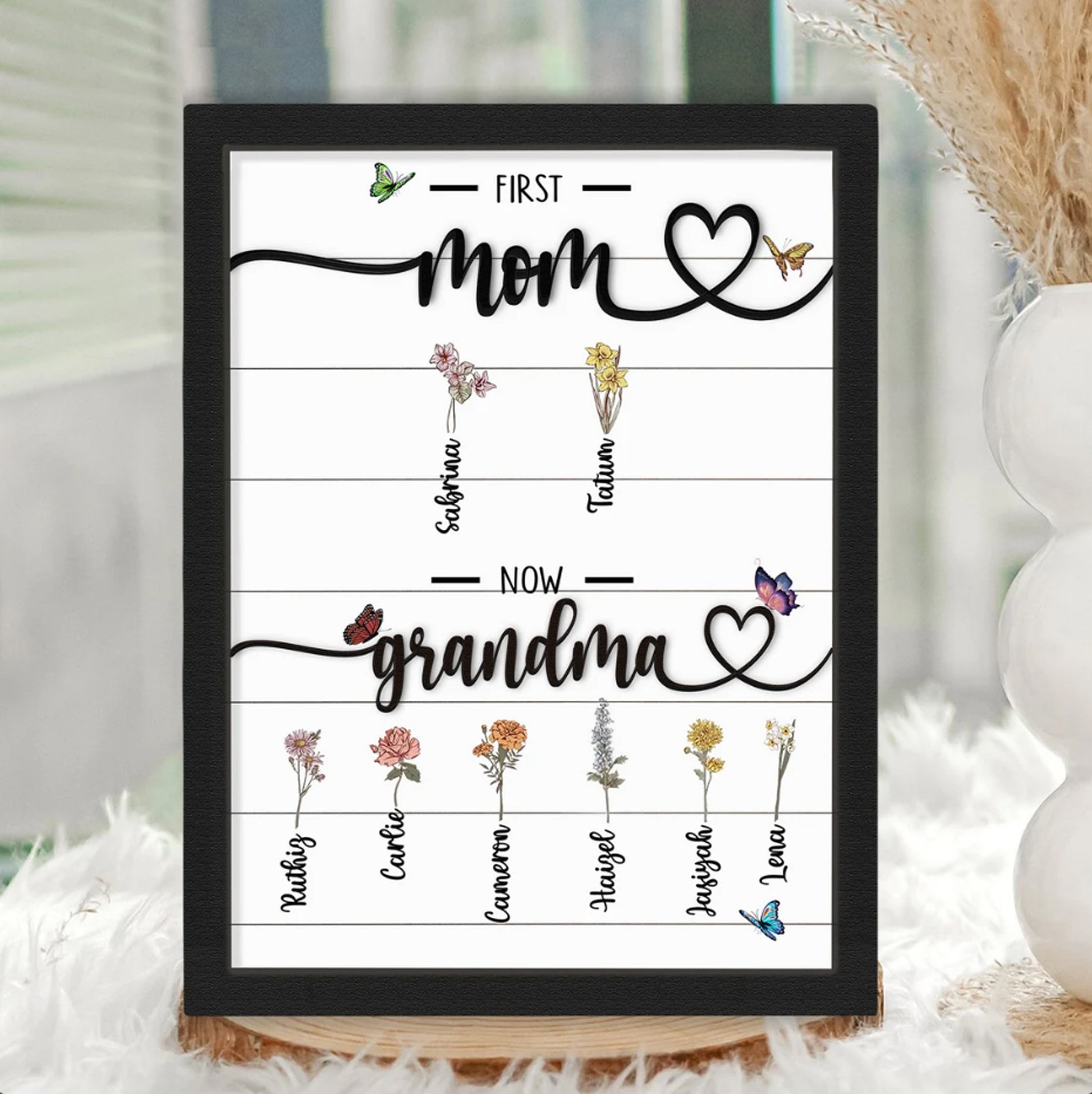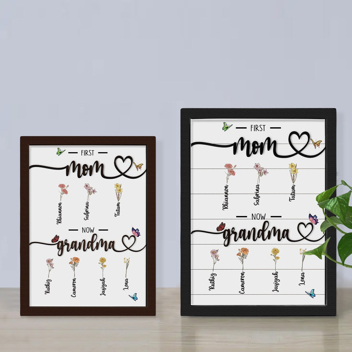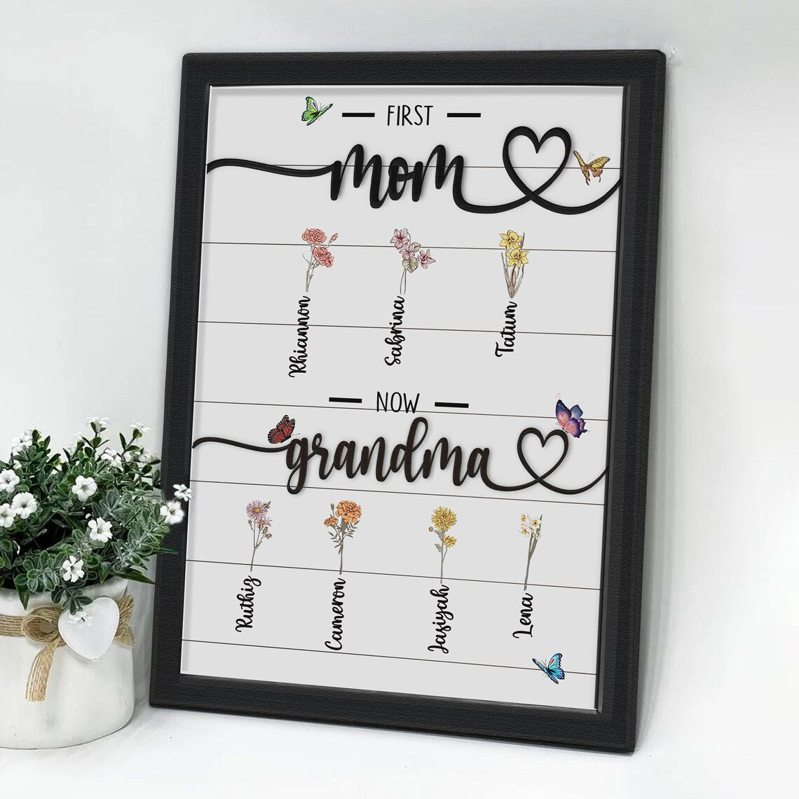 Personalized "First Mom Now Grandma" Sign, Custom Birth Month Flowers Sign, Unique Mothers Day Gift, Gift for Mom and Grandma