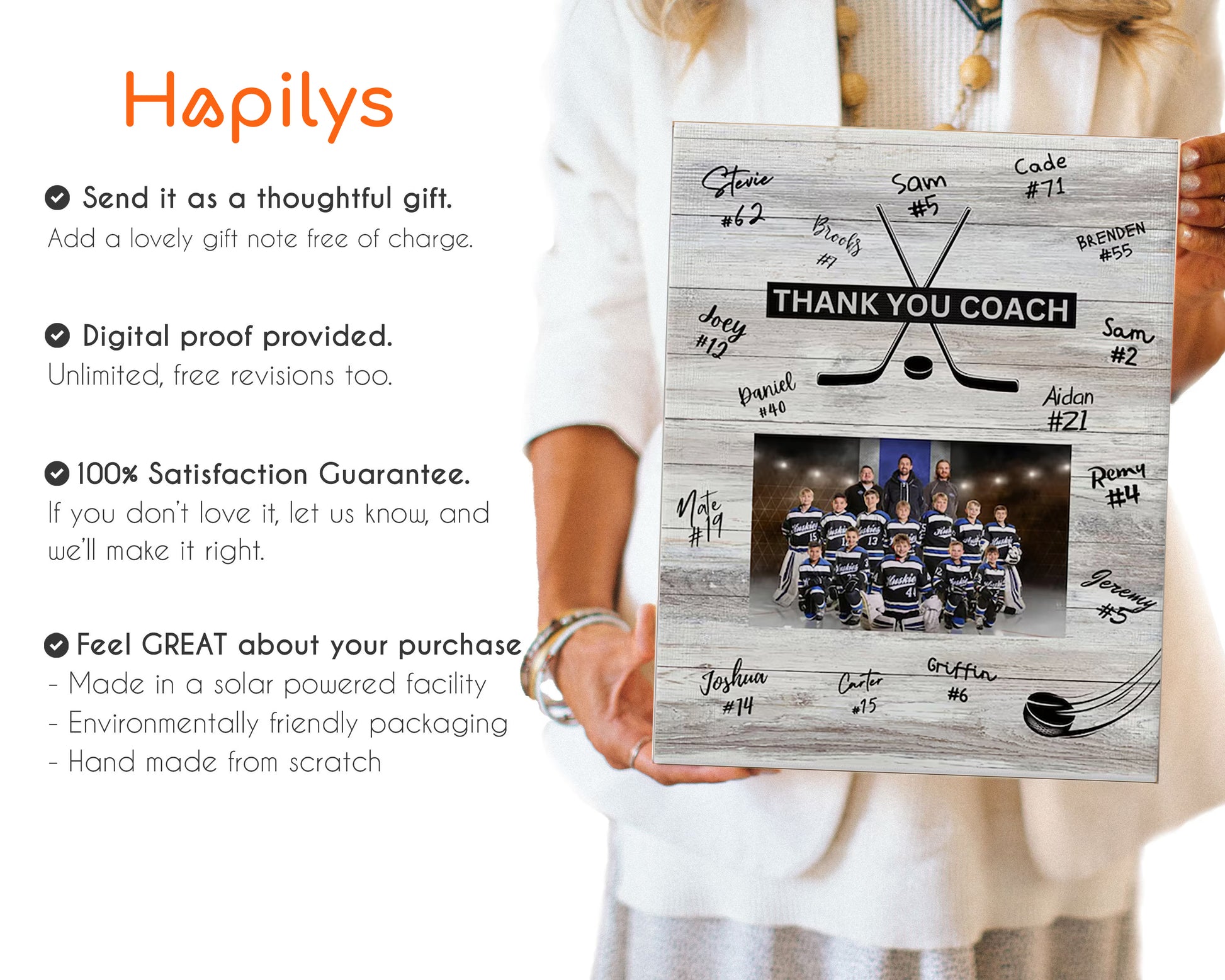 I couldn't be happier with this personalized gift I ordered for my son's hockey coaches! The quality was outstanding and every detail was beautifully done. It was the perfect way to capture such special memories. This company was an absolute pleasure to work with-responsive, professional and truly dedicated to making sure everything was exactly how I envisioned. I highly recommend Hapilys to anyone looking for a unique and heartfelt gift!