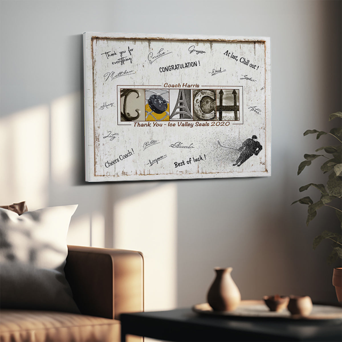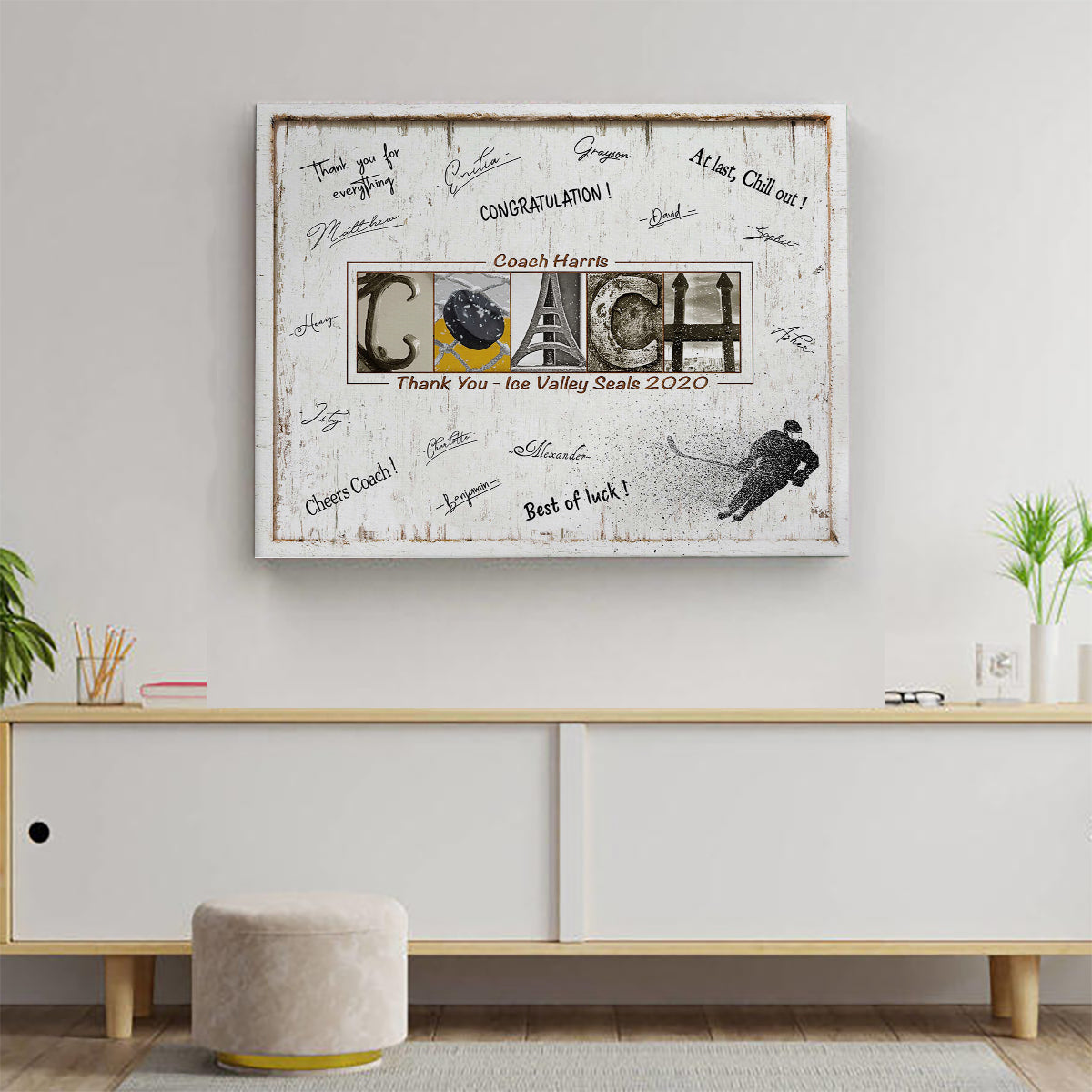 Hockey Coach Personalized Gift, Thank You Gift For All The Team To Sign