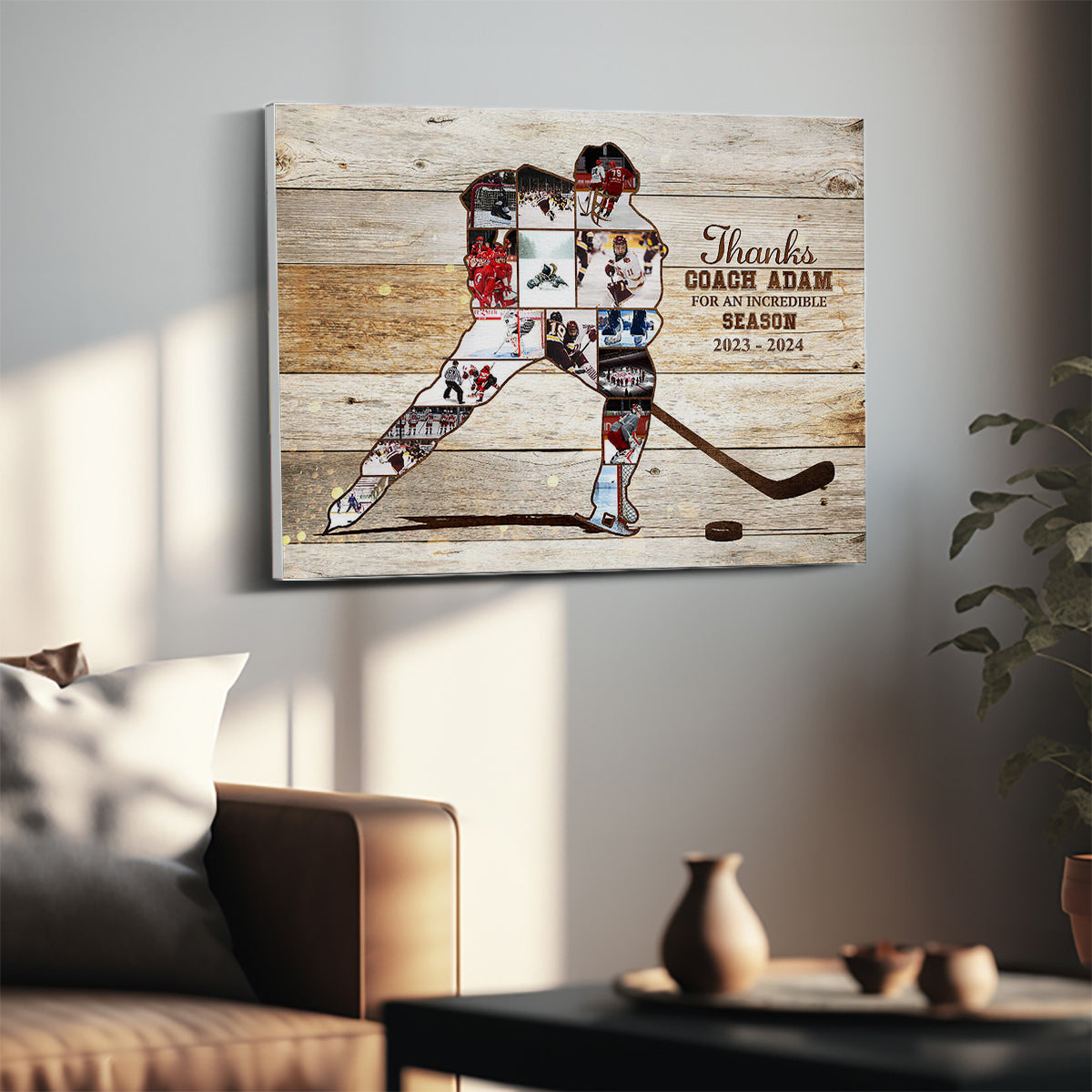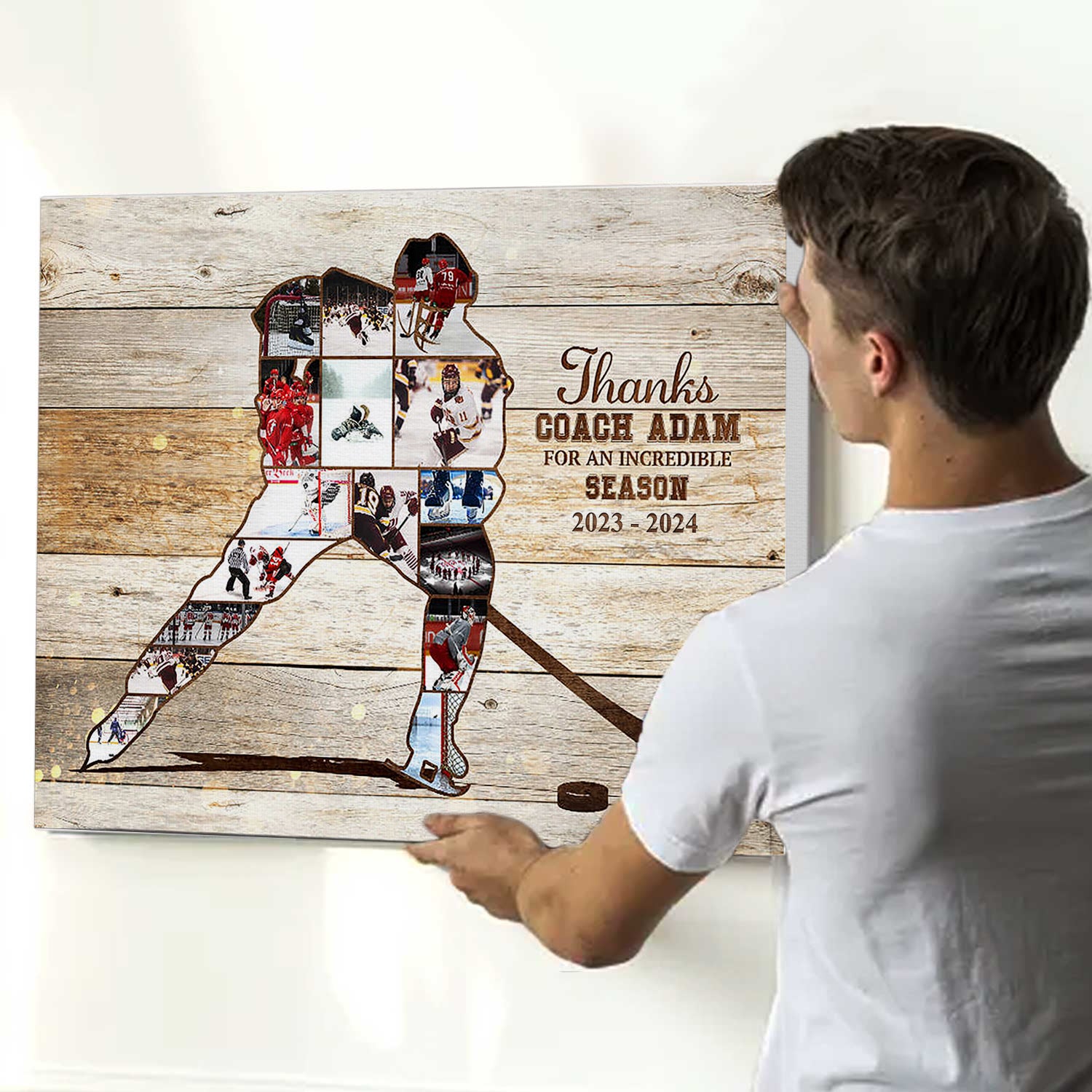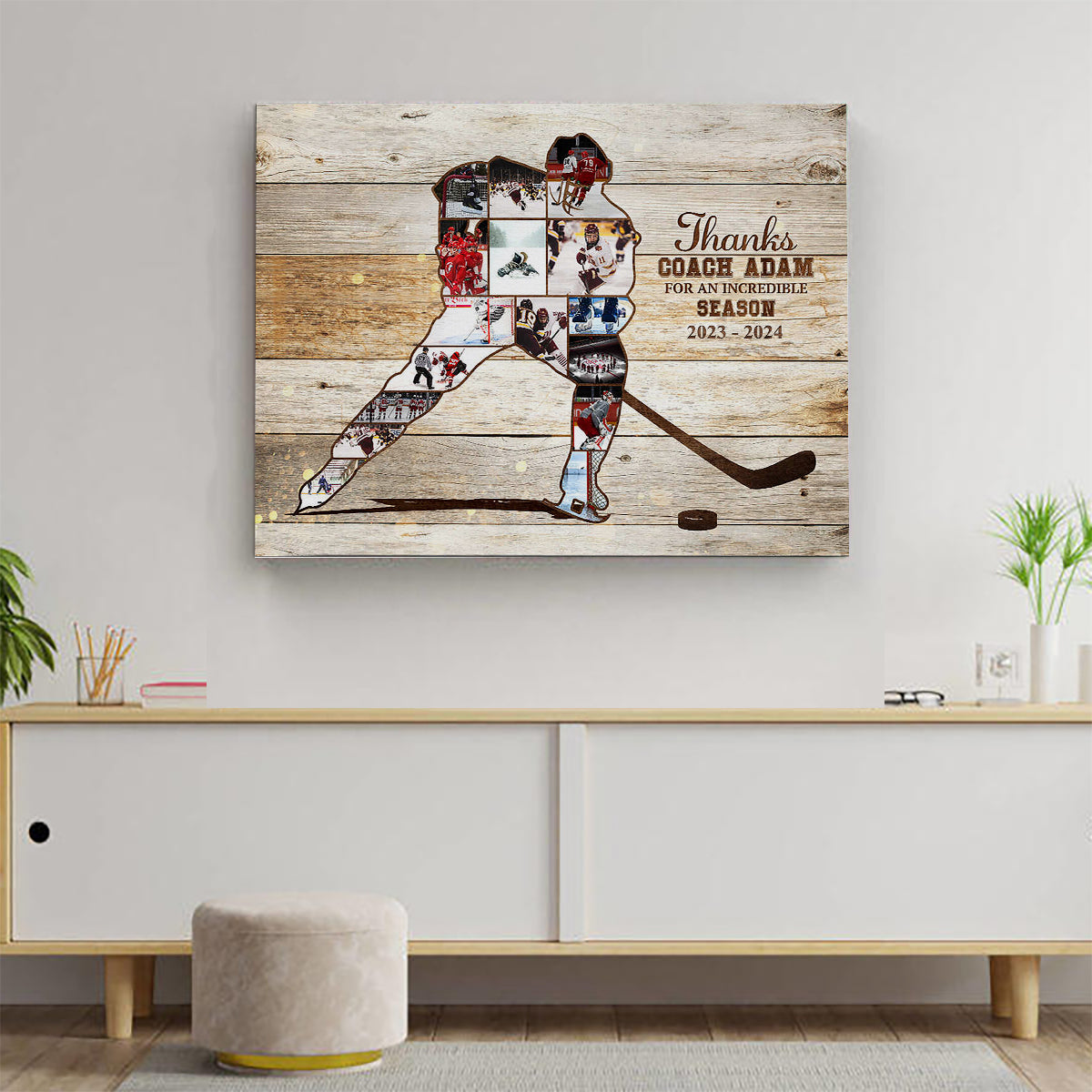 Hockey Player Photo Collage Canvas, Hockey Coach Gift, Personalized Ice Hockey Sport Gift