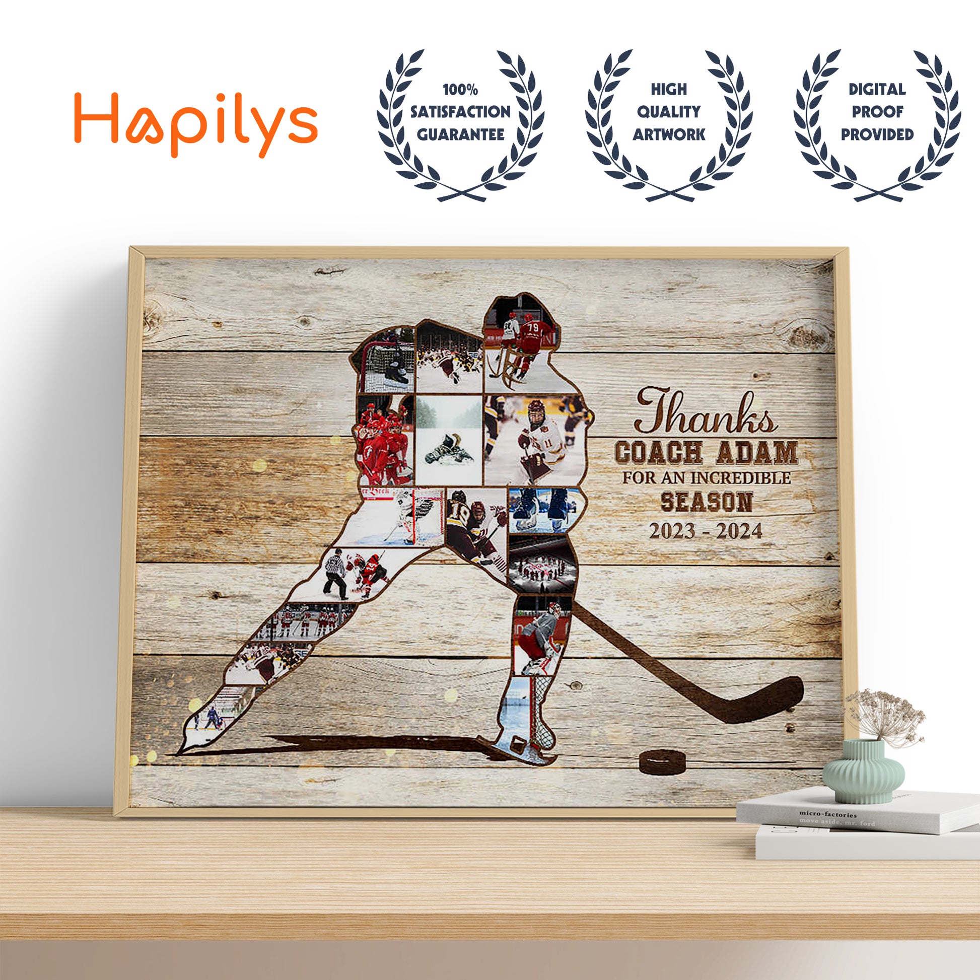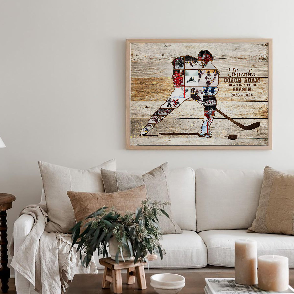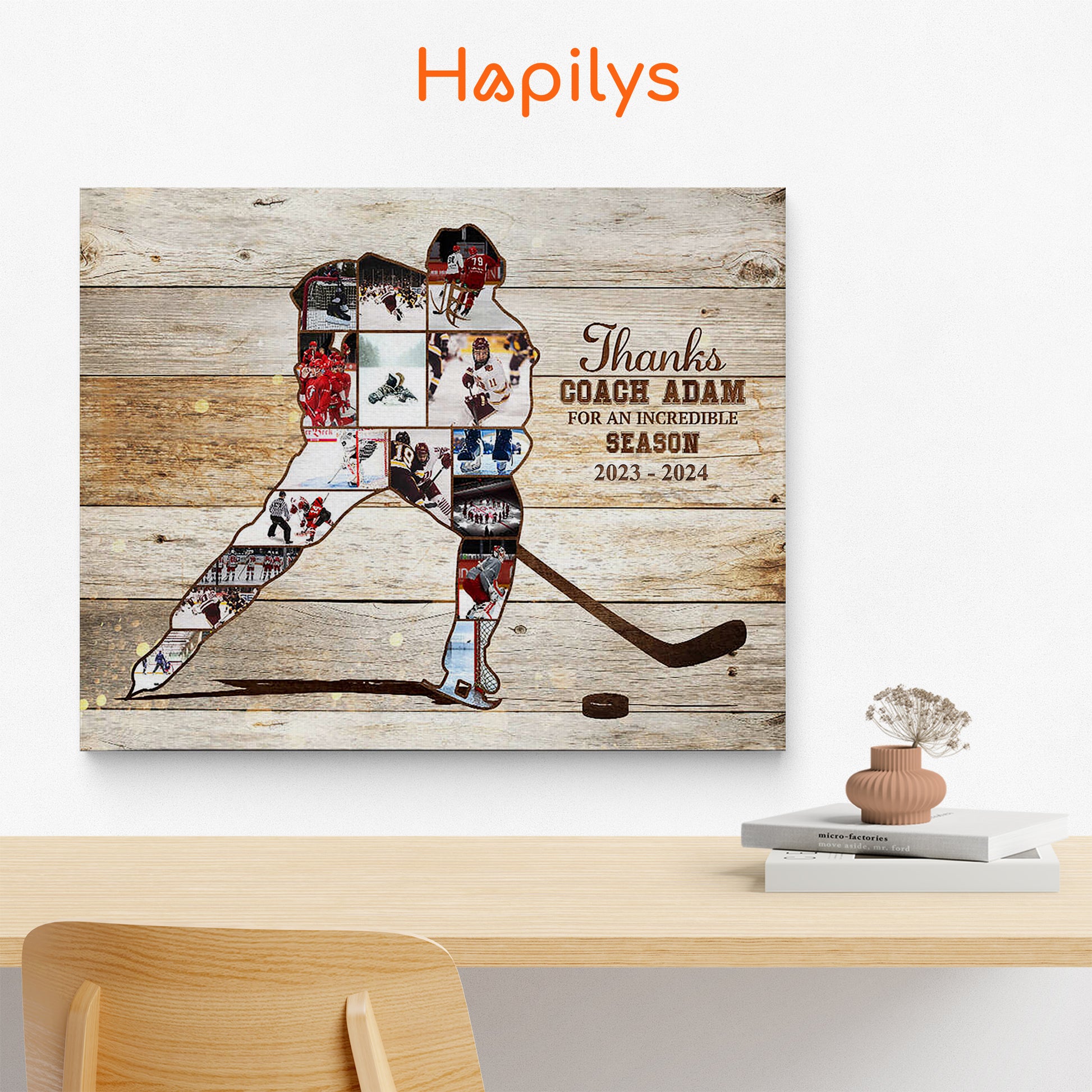 Hockey Player Photo Collage Canvas, Hockey Coach Gift, Personalized Ice Hockey Sport Gift
