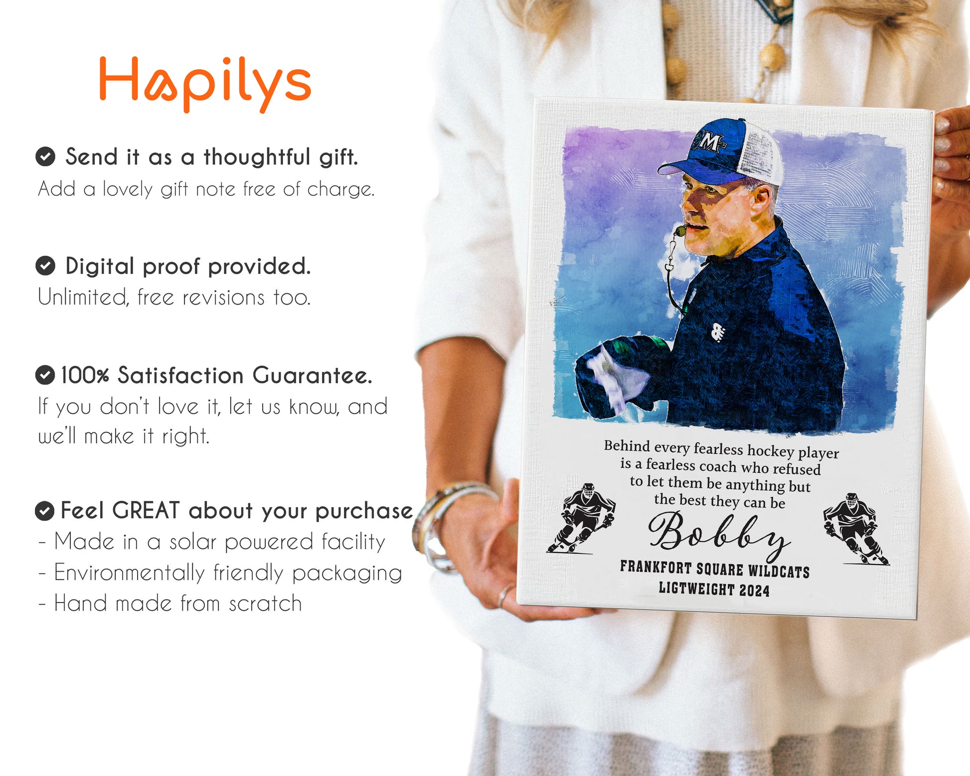 I couldn't be happier with this personalized gift I ordered for my son's hockey coaches! The quality was outstanding and every detail was beautifully done. It was the perfect way to capture such special memories. This company was an absolute pleasure to work with-responsive, professional and truly dedicated to making sure everything was exactly how I envisioned. I highly recommend Hapilys to anyone looking for a unique and heartfelt gift!