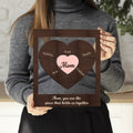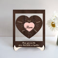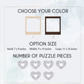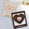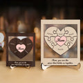 The heart of the design is a heart-shaped puzzle, assembled from pieces engraved with your family's names, set against a clear acrylic backdrop. Below, the phrase "The Glue That Binds Us" is elegantly inscribed, highlighting the intricate beauty of this work.