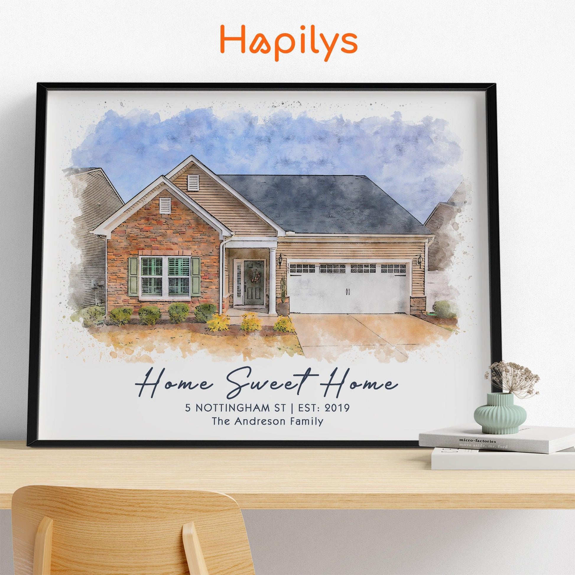 Hapilys Watercolor House Portrait from Photo, New Home Gift, Custom Housewarming, Realtor Closing Framed Canvas Gift